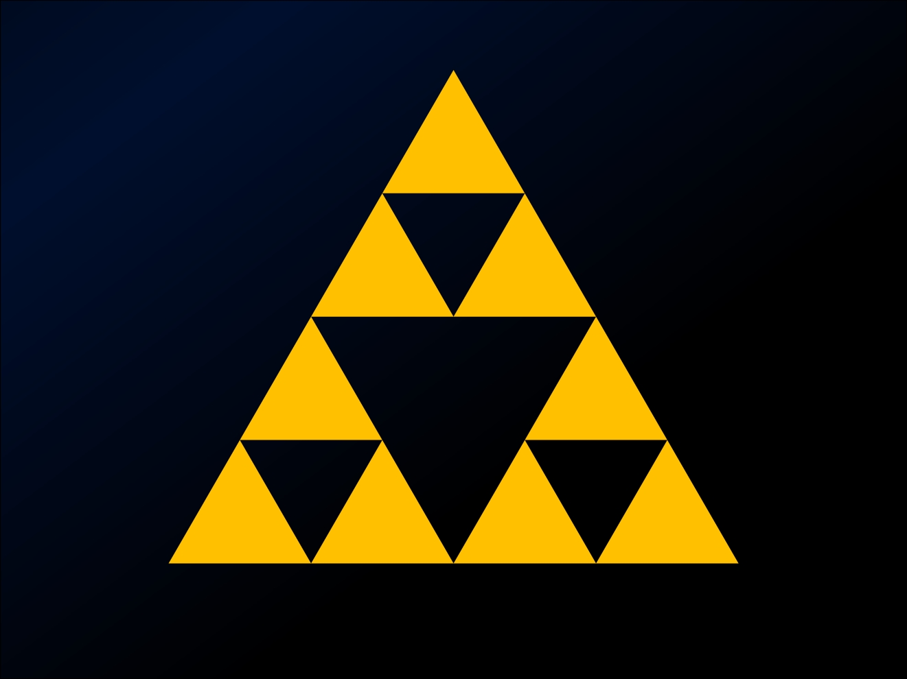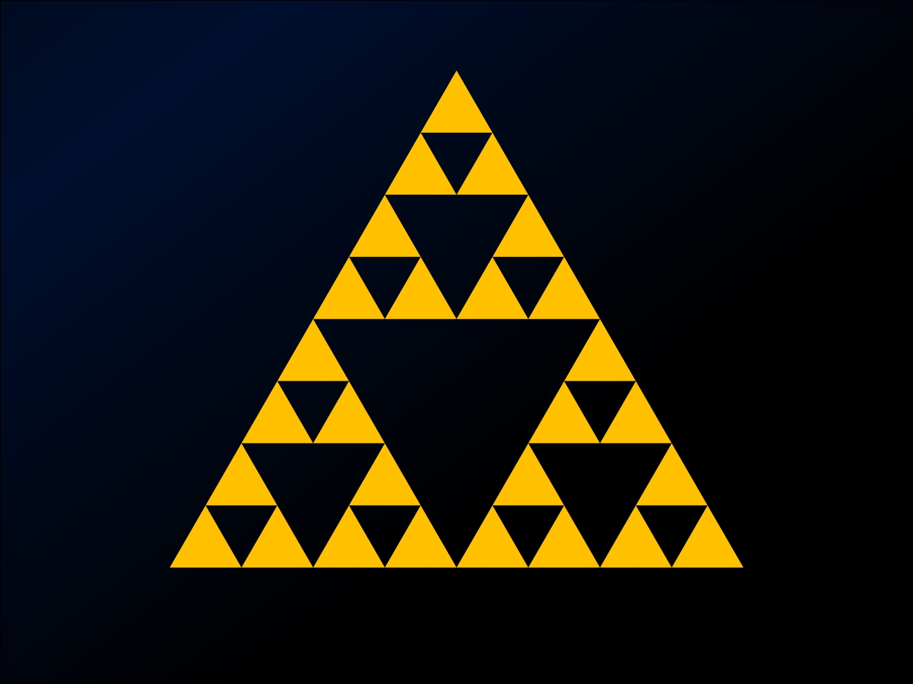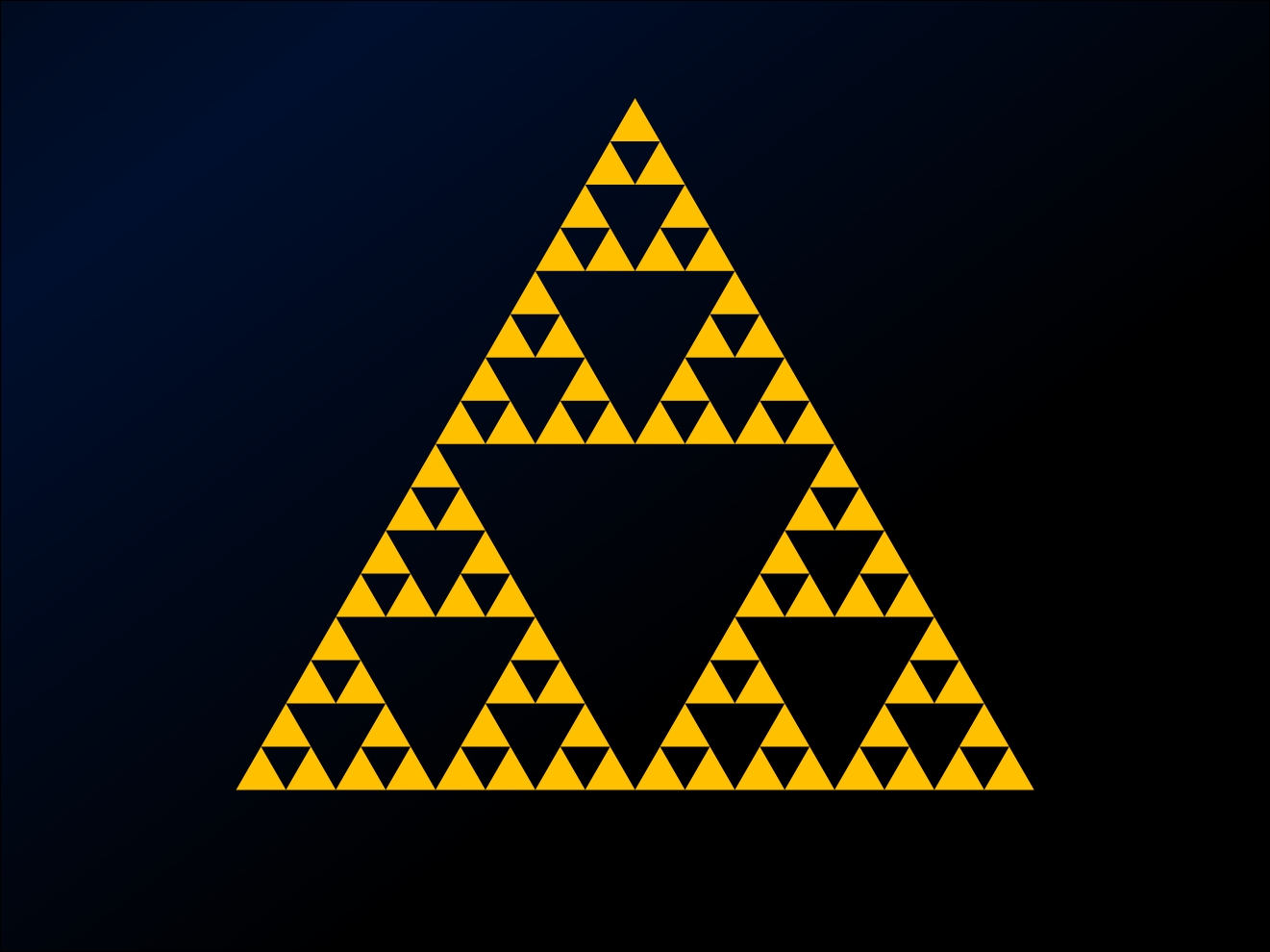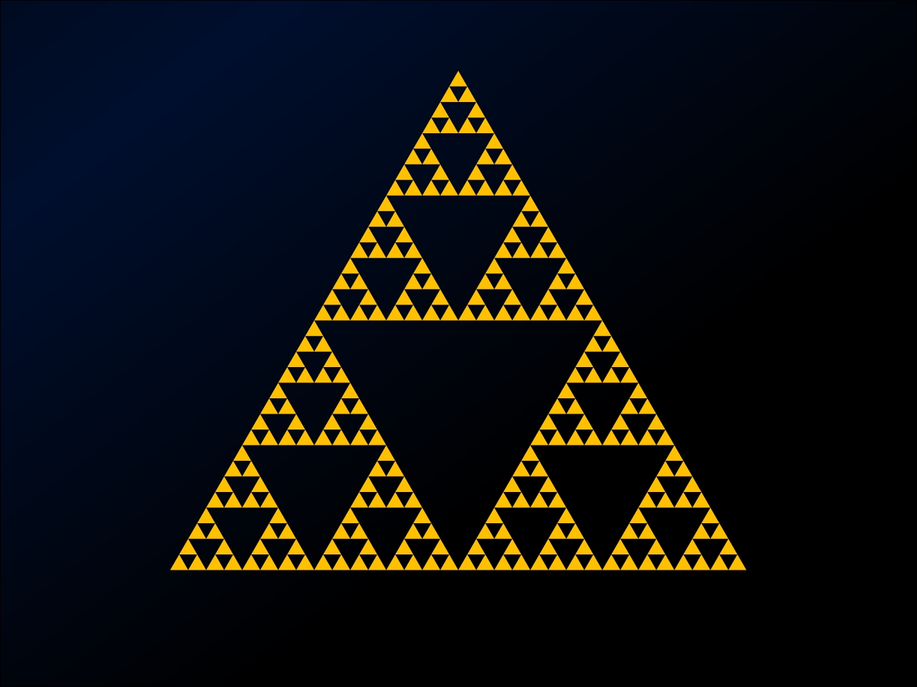 This is one of the simplest illustrations of the concept of fractal geometry, which you may have heard of, and which has all sorts of useful applications in the real world. Some very simple rules (like “connect the midpoints of a triangle”) can result in some very complex and beautiful patterns.